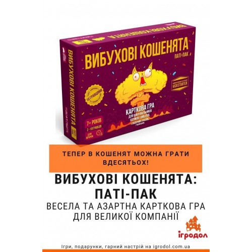 Вы также можете купить игру Exploding Kittens: Party Pack на украинском на Подоле в нашем магазине (М. "Контрактова Площа").