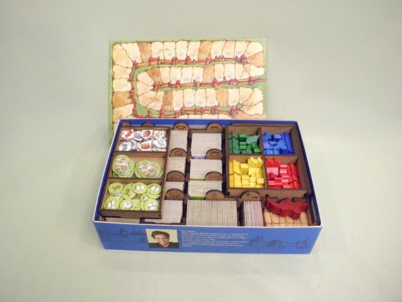 Для удобной сортировки и хранения игровых элементов из базовой игры и дополнений вы можете приобрести удобный органайзер для настольной игры Каркассон, куда поместятся все компоненты базовой игры и дополнений, входящих в сборники дополнений Предместья и Обитатели, Дворяне и Башни