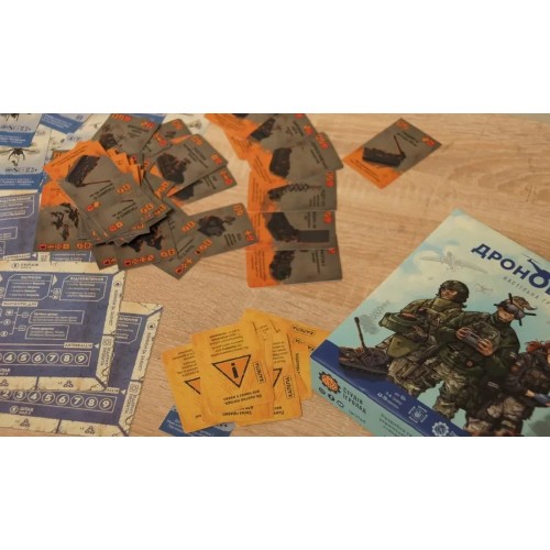 Настольная игра Дроноводы UA - полукооперативная военная стратегия для 1-4 игроков, созданная ветеранами российско-украинской войны на основе реального боевого опыта.