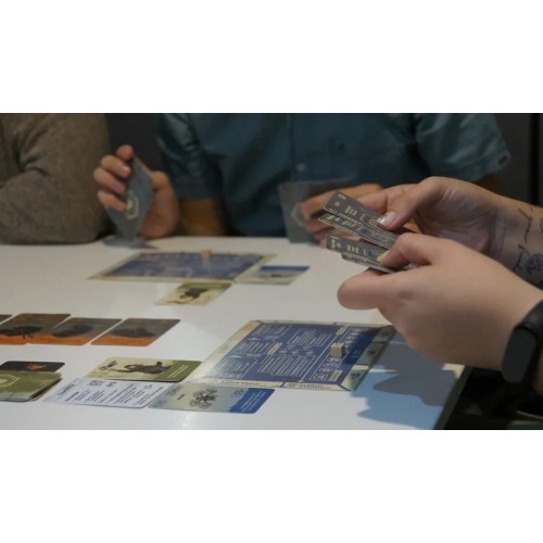 Фаза управления - игроки по очереди будут разыгрывать по одной карте поддержки из руки и выполнять 1 из 5 возможных действий - рекрутинг, перемещение, эвакуация, покупка дрона или боевой вылет: