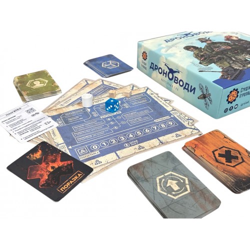 Дроноводы - настольная игра, которая воспроизводит комплекс боевых процессов и обучает тактическому мышлению. Вы будете набирать подразделения, закупать дроны, развивать технологические проекты, пытаясь продержаться 4 раунда до ротации и уберечь своих персонажей. Это кооперативная игра, где все игроки могут координировать свои действия, однако решения каждый принимает самостоятельно.