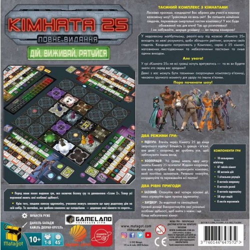 Настольная игра Комната 25: Расширенное издание UA (Кімната 25: Повне видання) - детективно-психологическая игра на выживание, украинская локализация настольной игры Room 25 Ultimate.