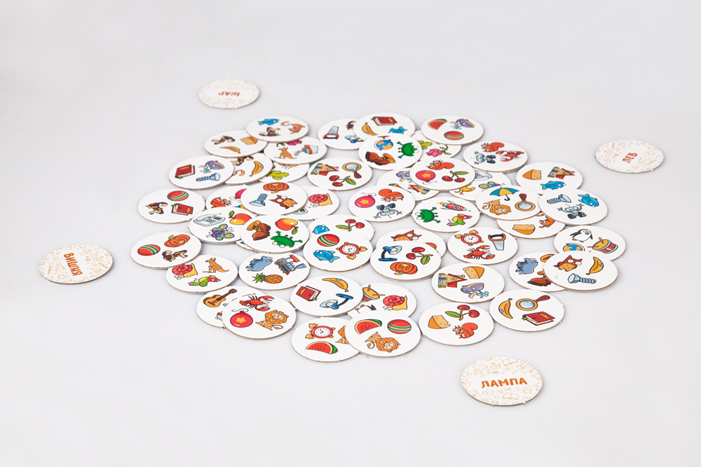 Гравці дивляться на свій жетон і намагаються знайти жетон на столі з таким же малюнком. Хто першим знаходить - вистачає жетон, викладає його поверх свого і далі шукає вже пару до одного з малюнків цього нового жетона. Загалом - дуже схоже на Доббл , тільки трохи легше.