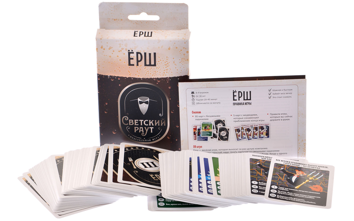 У настільній грі Йорж Світський раут гравці будуть по черзі тягнути карти з колоди. На кожній картці яке-небудь "цікаве" завдання, яке вам треба виконати? Чи не хочете виконувати? або не можете впоратися? Що ж - доведеться пити штрафну.