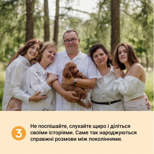 - Естафета поколінь: про любов, досвід і жарти, які передаються з покоління в покоління.