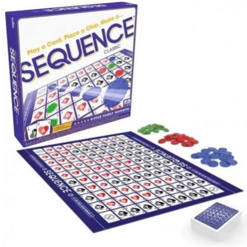 Настільна гра Сіквенс - абстрактна азартна гра для всієї родини або для компанії, в якій гравці намагатимуться викласти на ігровому полі послідовність із п'яти жетонів свого кольору по вертикалі, горизонталі чи діагоналі. На клітках ігрового поля зображені гральні карти – два комплекти стандартної колоди карт від двійки до туза (але без джокерів та валетів). Розігруючи карту з руки, гравець накриває відповідну їй клітинку ігрового поля жетоном свого кольору. Виставили свої жетончики на ігровому полі п'ять у рядочок - ви перемогли! Однак це не пасьянс і суперники, звичайно, постараються вам перешкодити)