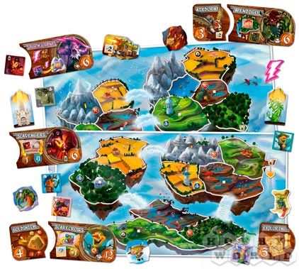 Якщо вам вдалося завоювати всі області на одному з островів - це буде генерувати вам додаткову монету кожен хід. Області на Небесних островах з'єднані один з одним хмарним мостом, вважаються суміжними. Озера на небесних островах володіють тими ж властивостями, що і водні області на землі - Тритони зможуть їх завоювати, а водна раса - набратися сил. А ось річки і водоспади - зображені виключно для краси.